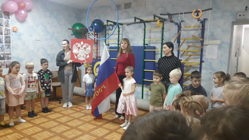 Вынос флага — особый торжественный ритуал, который может быть еженедельным или проводиться во время торжественных мероприятий, посвящённых важным событиям, праздникам и памятным датам. Цель такой практики — сформировать у детей чувство патриотизма и гражданственности, а также познакомить их с символическим значением флага России и значением изображённых на нём цветов. |