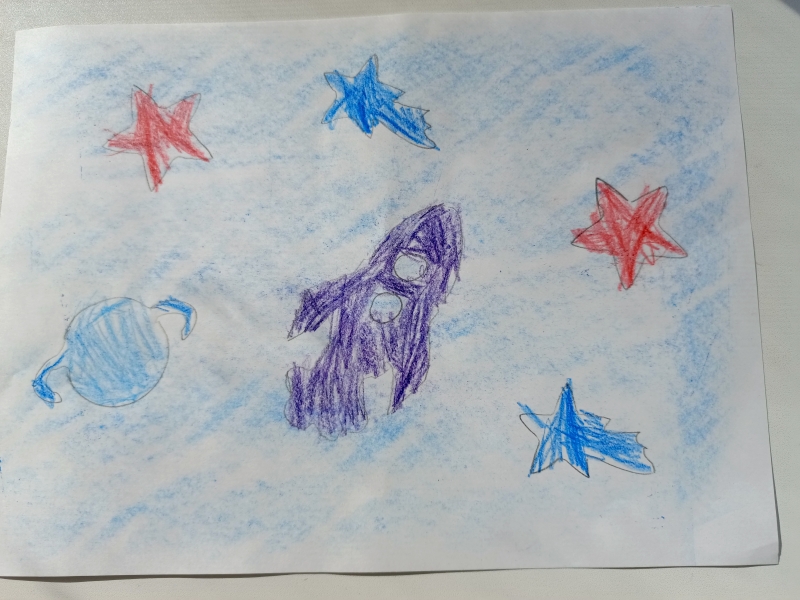 В темном небе звёзды светят, Космонавт летит в ракете. День летит и ночь летит, И на землю вниз глядит.