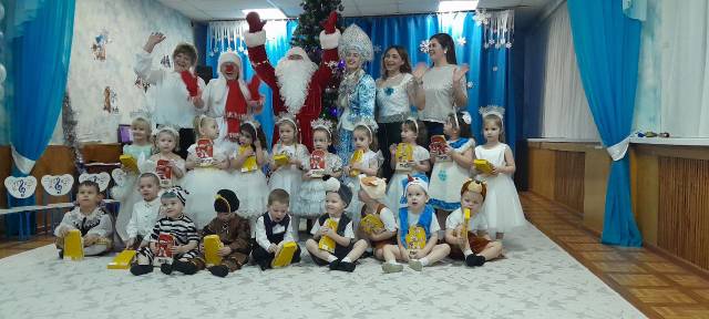 За окном снежок идет,Наступает Новый год.Песню громкую о томМы у елочки поем.Дед Мороз пришел, ура!Ждем подарков мы с утра,Ведь не зря среди зимыЕлку нарядили мы.