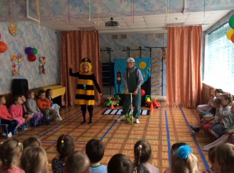 В нашем детском саду проходят мероприятия по ОБЖ и открыли месячник безопасности выездной театр «Веселый стриж» с программой ПДД. Пчелка «Жужа» вместе с ребятами научила Шурочку правилам дорожного движения. Ребята закрепили свои знания по правилам дорожного движения и сформировали свои представления об опасных ситуациях и способах поведения в них. Дети с удовольствием принимали участие в играх и конкурсах!