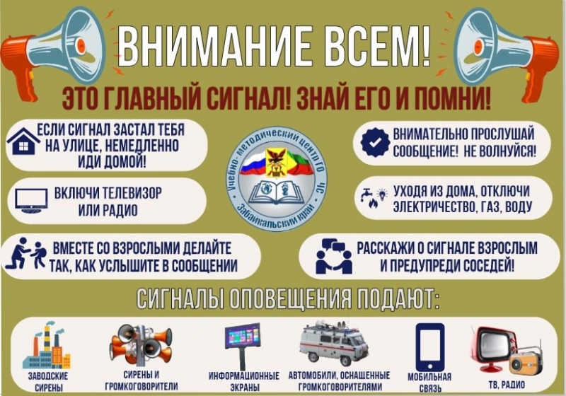 Всем взрослым необходимо усвоить самим и разъяснить детям, что звук сирен – это сигнал «ВНИМАНИЕ ВСЕМ!». Услышав его, не надо пугаться. Ознакомьте детей с представленной памяткой, это поможет им усвоить порядок действий при получении данного сигнала и избежать паники.